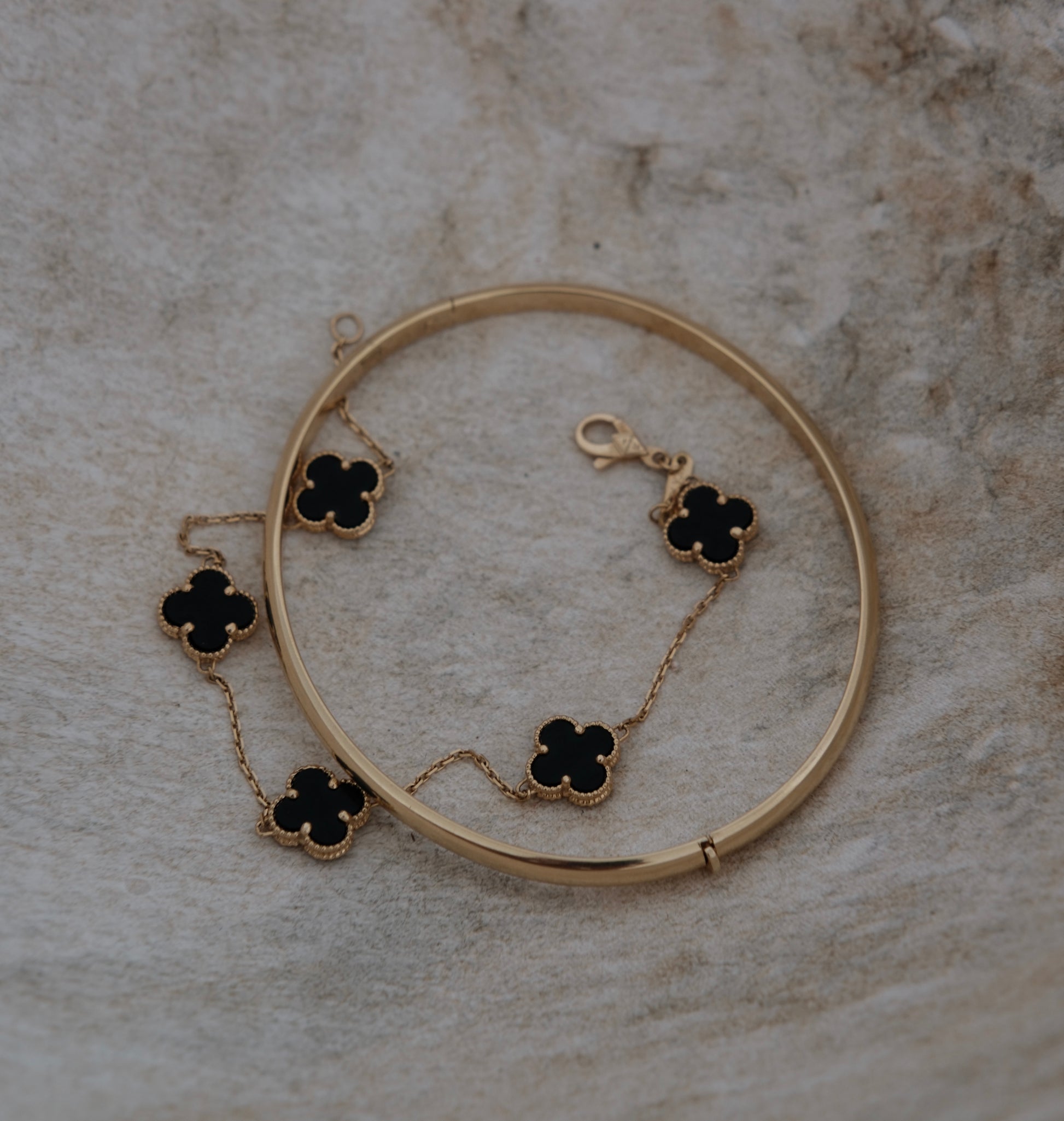 Clover bracelet in black, 5 motifs.
